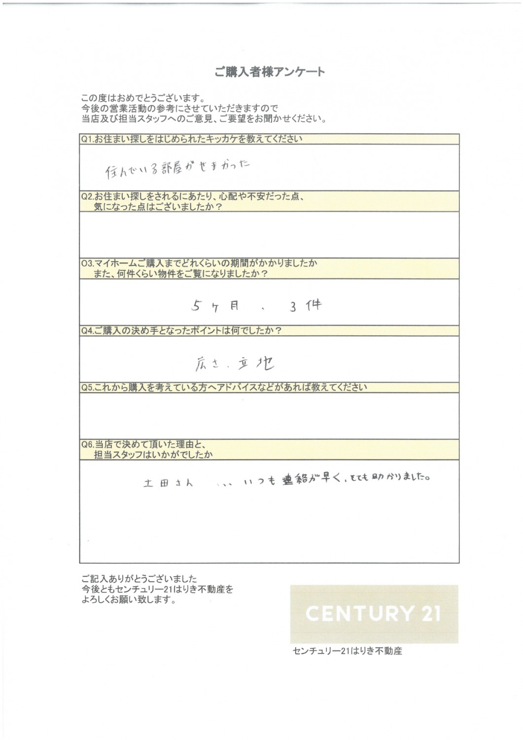 ご見学から本日まで色々とお付き合いいただきまして、誠にありがとうございました。